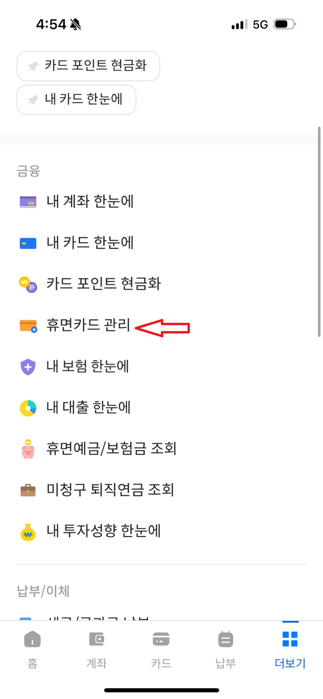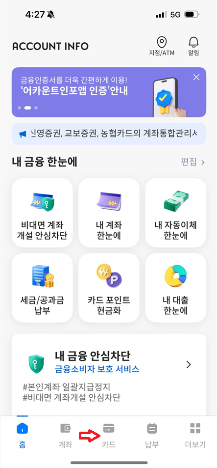- 앱 실행 → 메인 화면 하단에서 “카드” 메뉴 선택