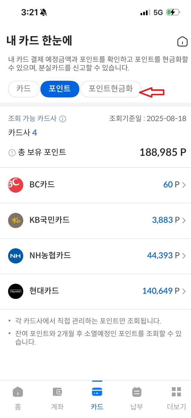 - 카드사 포인트만 모아도 몇 만원 이상 나오는 경우가 많습니다.